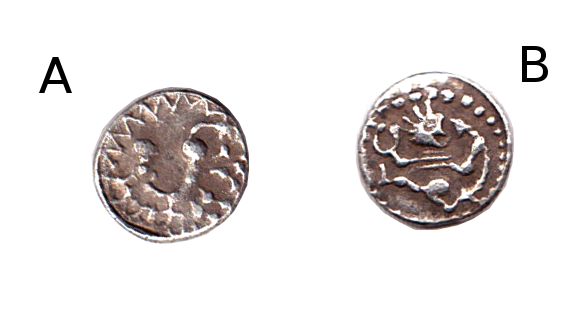 The Dancing Man. This is a reproduction of a Celtic Latene period silver quinar struck between 60 BC and 1 BC which depicts a dancing man holding a torc in one hand and a snake in the other surrounded by a circle of dots which might be pearls or jewels or stones or even eggs. A gold? quinarius had a value of half of a gold denarius according to Pliny who wrote that its value was five pounds of bronze to the denarius' ten but later after its weight had been reduced a denarius would fetch sixteen asses to a quinarius' eight. According to Roymans and Aarts, 2009 the quinarii may be associated with the Ubii and have been found associated with Augustan army camps where they seem to have been in circulation between 30 BC to 10 AD.